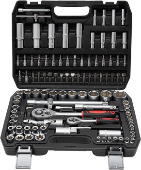 Set di 108 Pezzi di Chiavi a Bussola Professionali per Meccanica Auto, Kit di Utensili Manuali con Chiavi Combinate e Punte in Acciaio Plastico